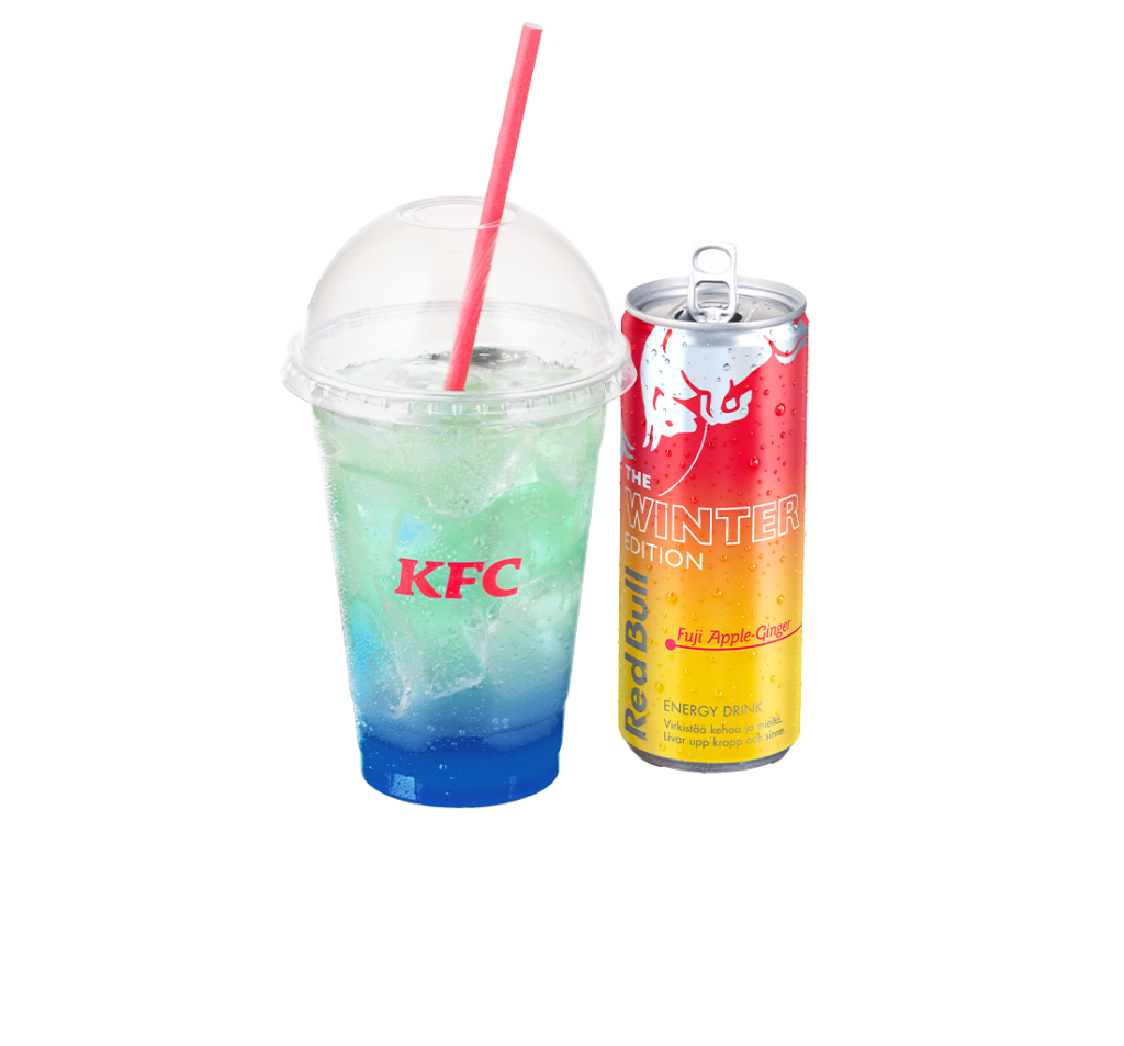 Red Bull Winter Edition (omena-inkivääri), johon lisätty Curaçao-siirappi. Ikäraja 15!